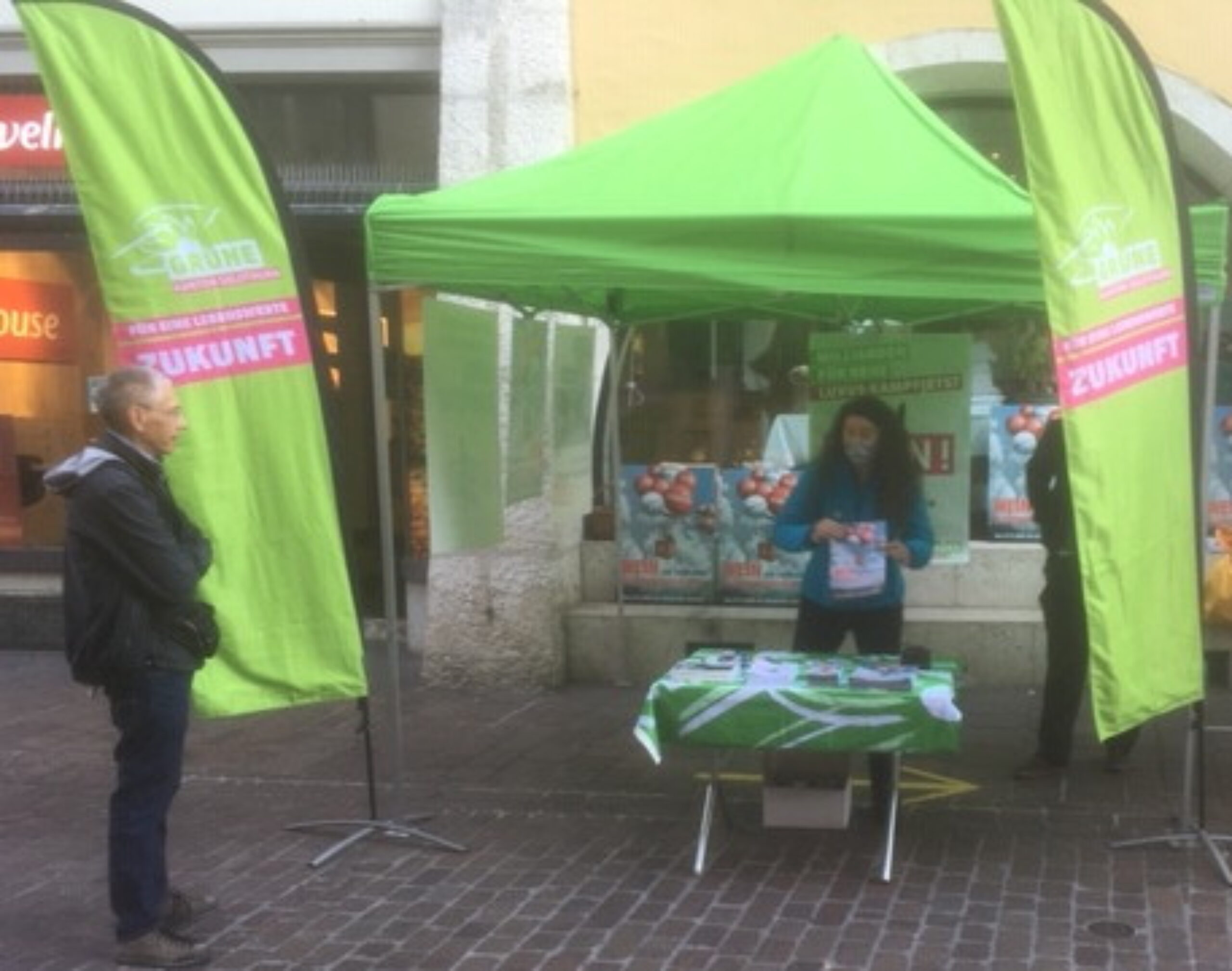 Aber auch gegen das verfehlte Jagdgesetz und die Kündigungsinitiatve wurde geworben – und für mehr Engagement bei den Grünen. Am Stand daneben wehrte sich die SP vor allem auch gegen den Kinderabzugs-Bschiss.